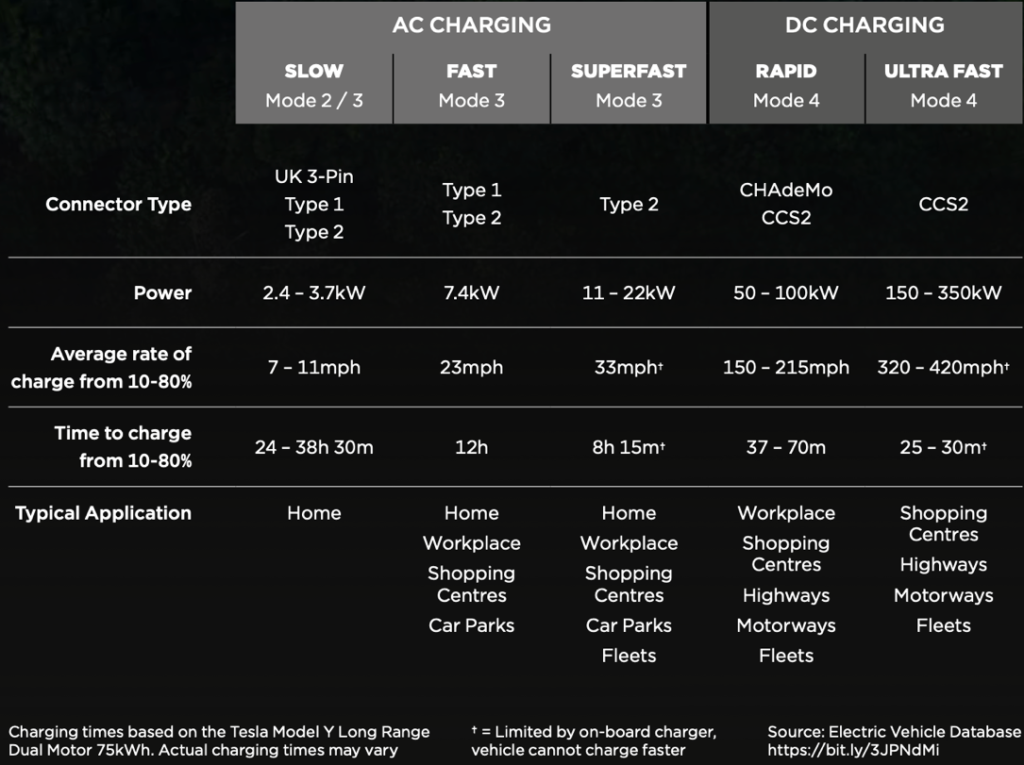 An AC charger uses power from the grid, supplied in alternating current, which is then converted to DC by the vehicle’s onboard charger before it is sent to the car’s battery. This means charging speeds can be limited depending on how fast the onboard system can receive and convert the alternating current.